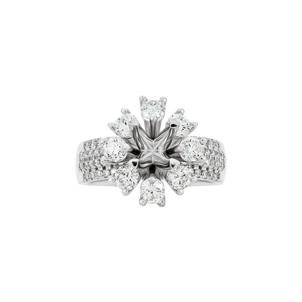Chiếc vỏ nhẫn đính hôn kim cương đầy phong cách này nạm chấu với 8 viên kim cương tròn trong suốt thuợng hạng   tổng sức nặng 0,46carat vòng quanh tôn vinh thêm vẻ đẹp tuyệt vời của sự lựa chọn của bạn qua viên kim cương chính giữa chiếc nhẫn